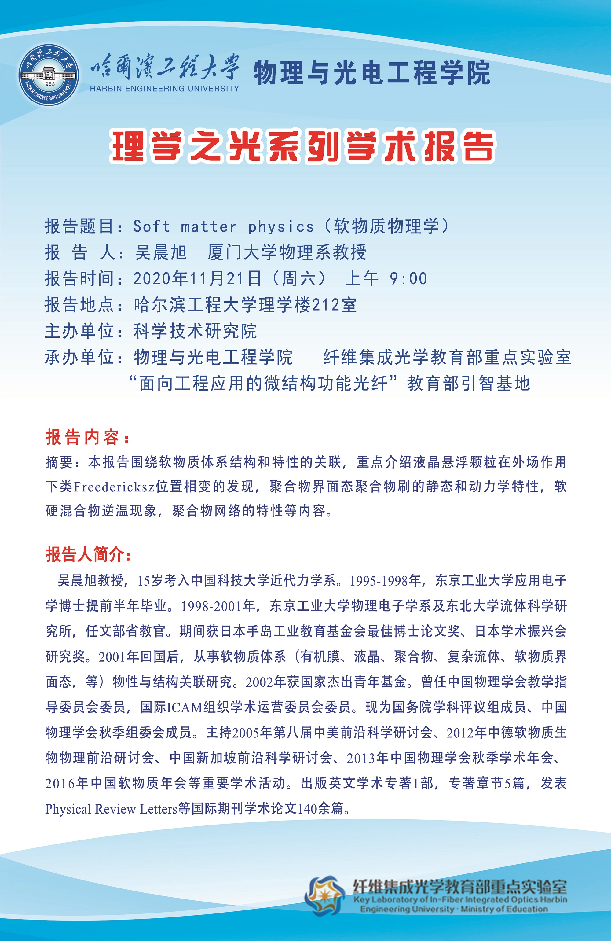 © 2019哈尔滨工程大学 纤维集成光学教育部重点实验室地址:哈尔滨市南岗区南通大街145号哈尔滨工程大学理学楼 邮编:150001 电话:0451-82519850管理维护:物理与光电工程学院 技术支持:信息化处