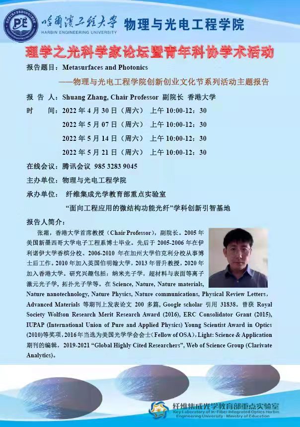 理学之光科学家论坛暨青年科协学术活动-Metasurfaces and Photonics