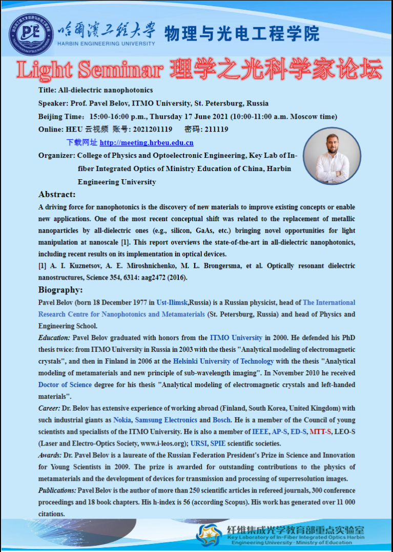 理学之光科学家论坛:All-dielectric nanophotonics