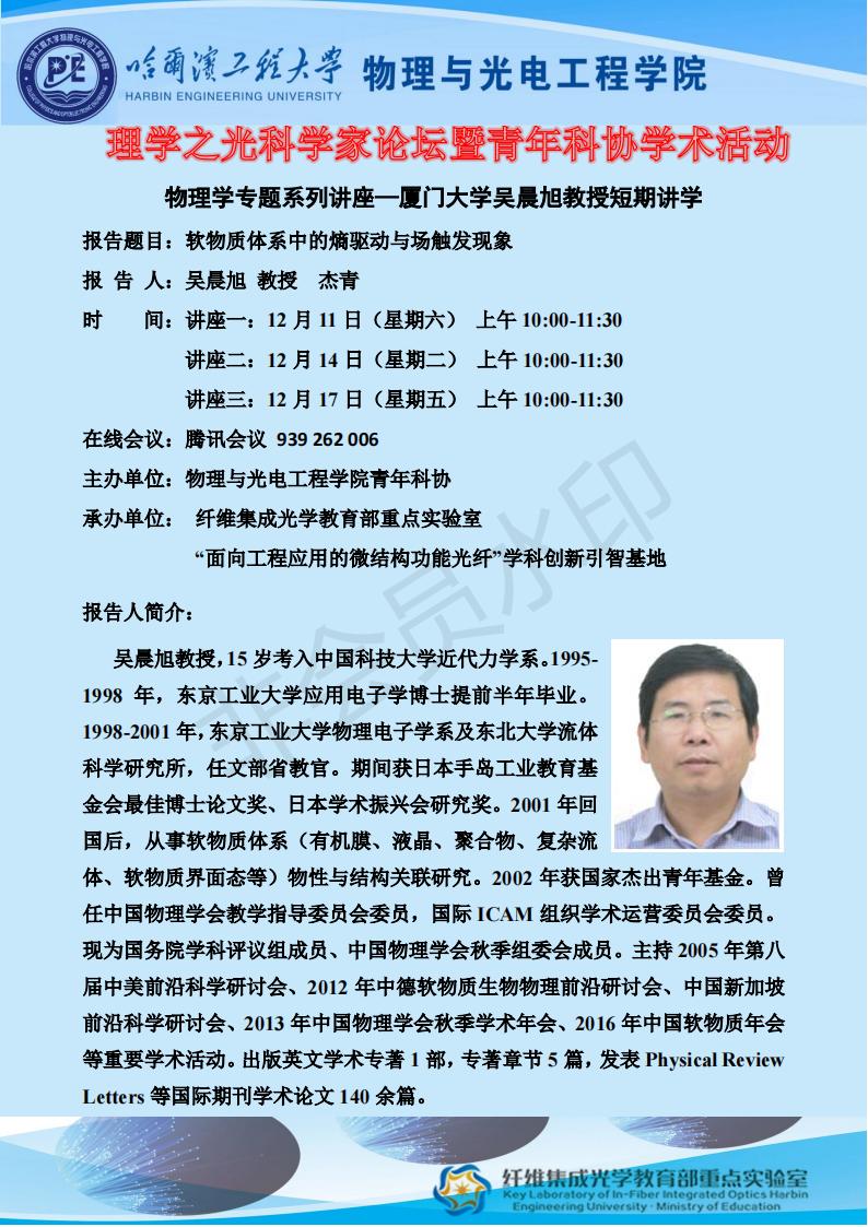 理学之光科学家论坛暨青年科协学术活动-物理学专题系列讲座一厦门大学吴晨旭教授短期讲学