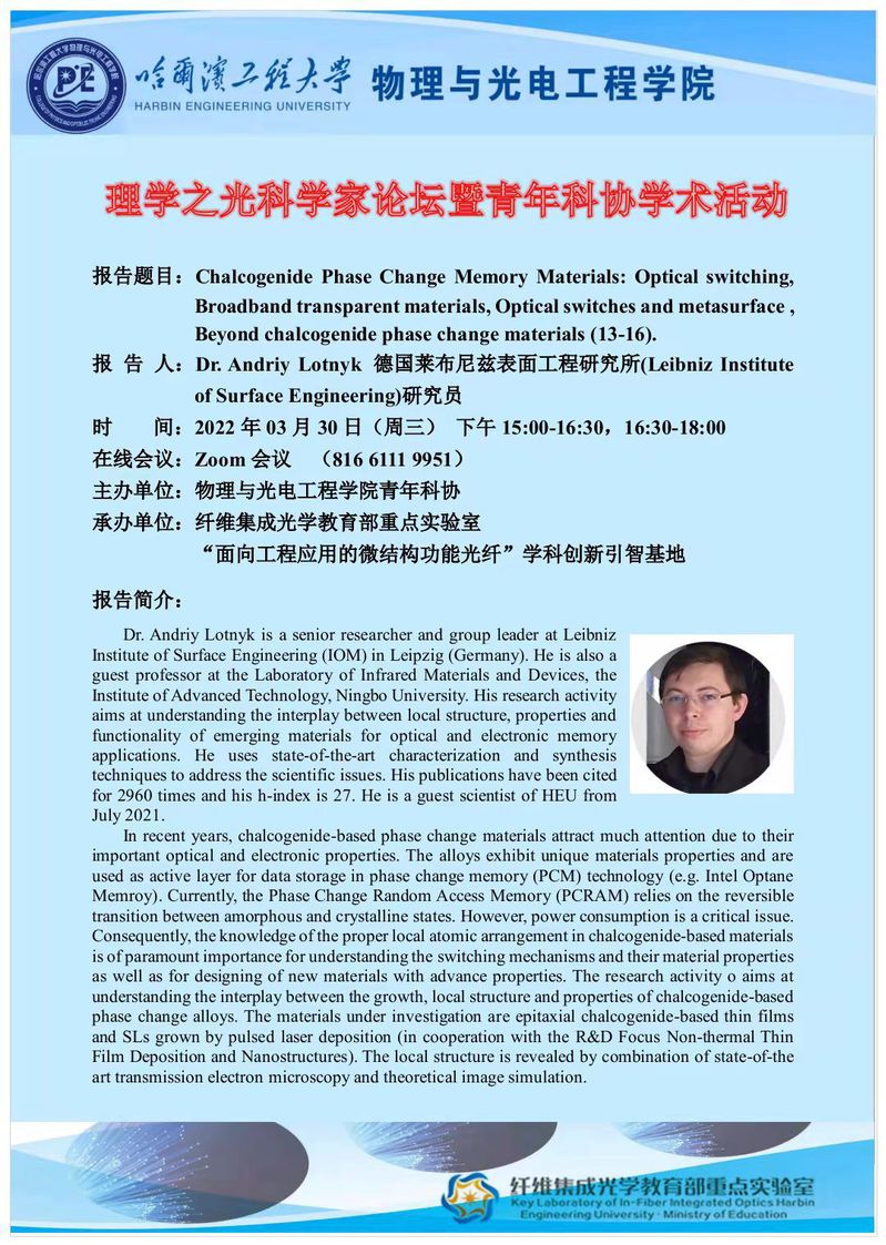 © 2019哈尔滨工程大学 纤维集成光学教育部重点实验室地址:哈尔滨市南岗区南通大街145号哈尔滨工程大学理学楼 邮编:150001 电话:0451-82519850管理维护:物理与光电工程学院 技术支持:信息化处